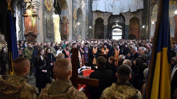 Od našeho zvláštního zpravodaje - Pod křížem jsou fotografie padlých, kusy munice a zbraní. V kostele neobvyklá věc, ale původně jezuitský svatostánek ze sedmnáctého století slouží právě tomuto účelu. Je to armádní kostel. Od začátku velké agrese v únoru 2022 se tady konaly stovky pohřbů vojáků, kteří zahynuli. "Zhruba jeden denně, někdy dva," říká správce Oleh, který zároveň pracuje v hlubokém podzemí na archeologických vykopávkách.