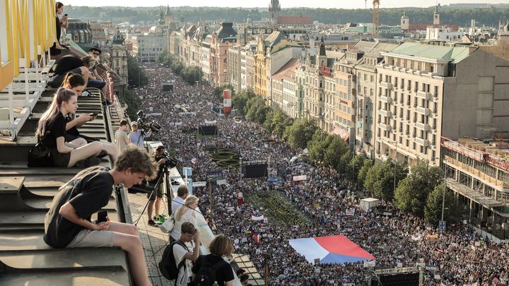 Největší demonstrace od revoluce. Plné Václavské náměstí žádá konec Babiše. Přišlo kolem sto dvaceti tisíc lidí.