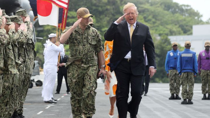 Trump americkou námořní základnu v Jokosuce navštívil v úterý na závěr čtyřdenní cesty do Japonska, kde ho jako prvního zahraničního hosta přijal nový císař Naruhito. Na americké výsadkové lodi USS Wasp prezident pronesl k námořníkům projev u příležitosti památky padlých, kterou si Spojené státy připomínaly v pondělí.