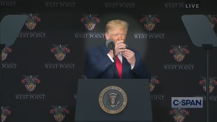Spekulace ohledně Trumpova zdraví už vyvolal nejistý krok při scházení z rampy podia při stejném vystoupení ve West Pointu.