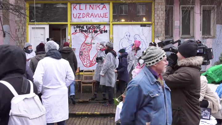 Živě: Exekutor vyzval aktivisty k opuštění Kliniky. Před budovou pokračuje happening